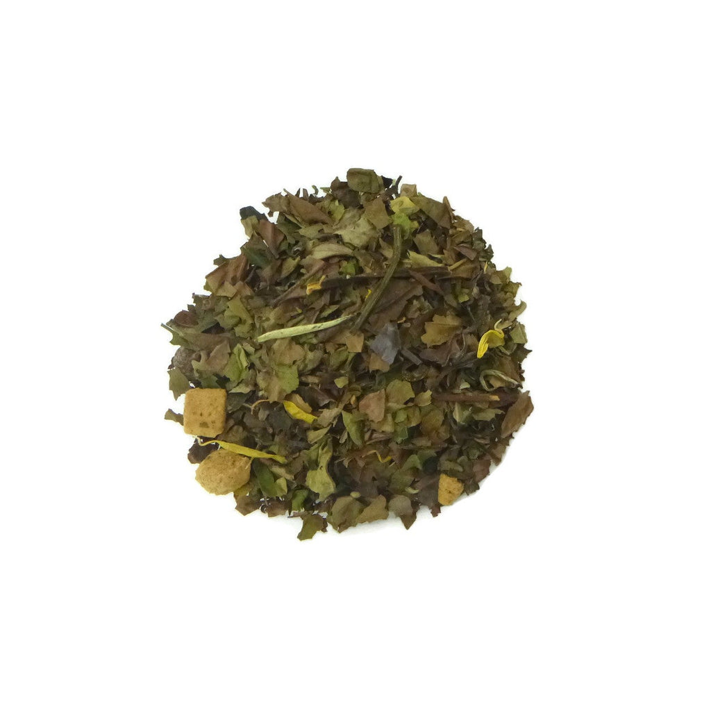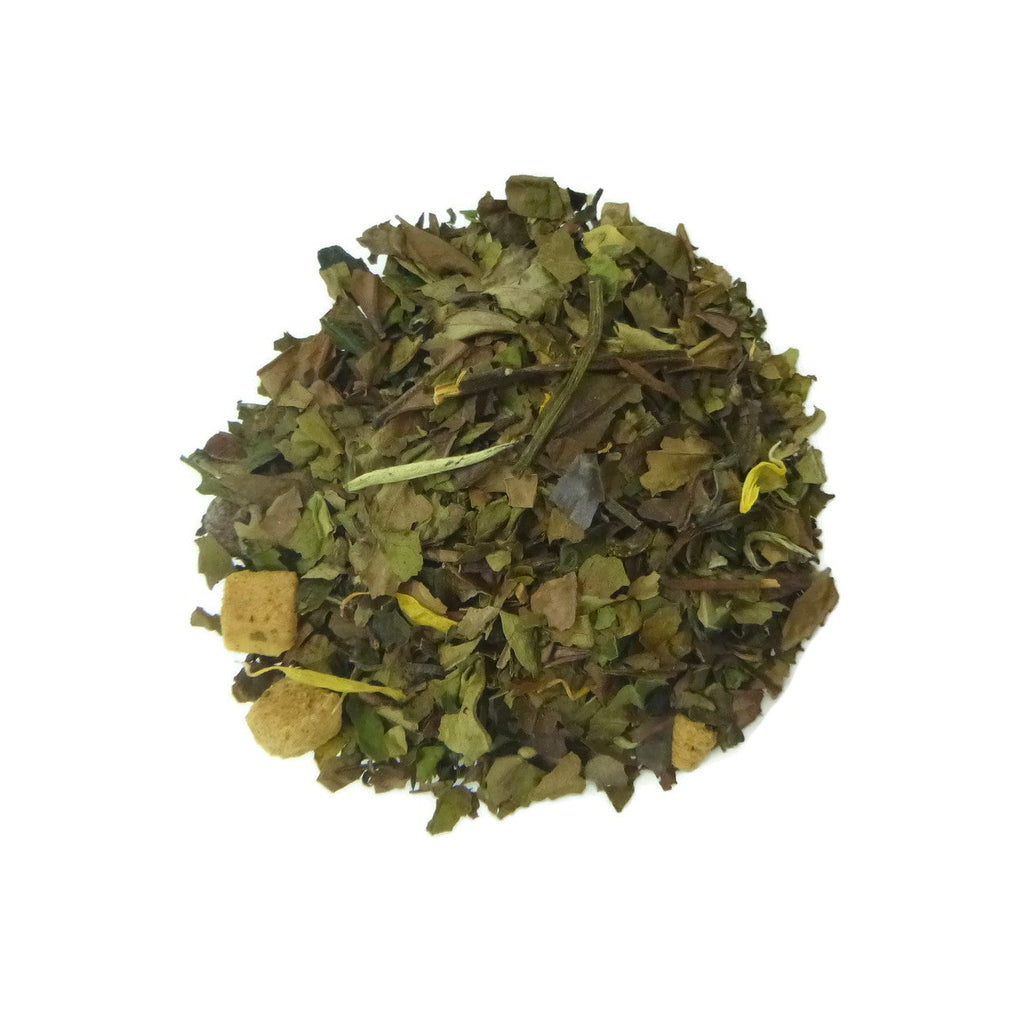 Ingredients: White tea, blueberries, peach pieces, natural peach flavor, natural blueberry flavor, marigold flowers.